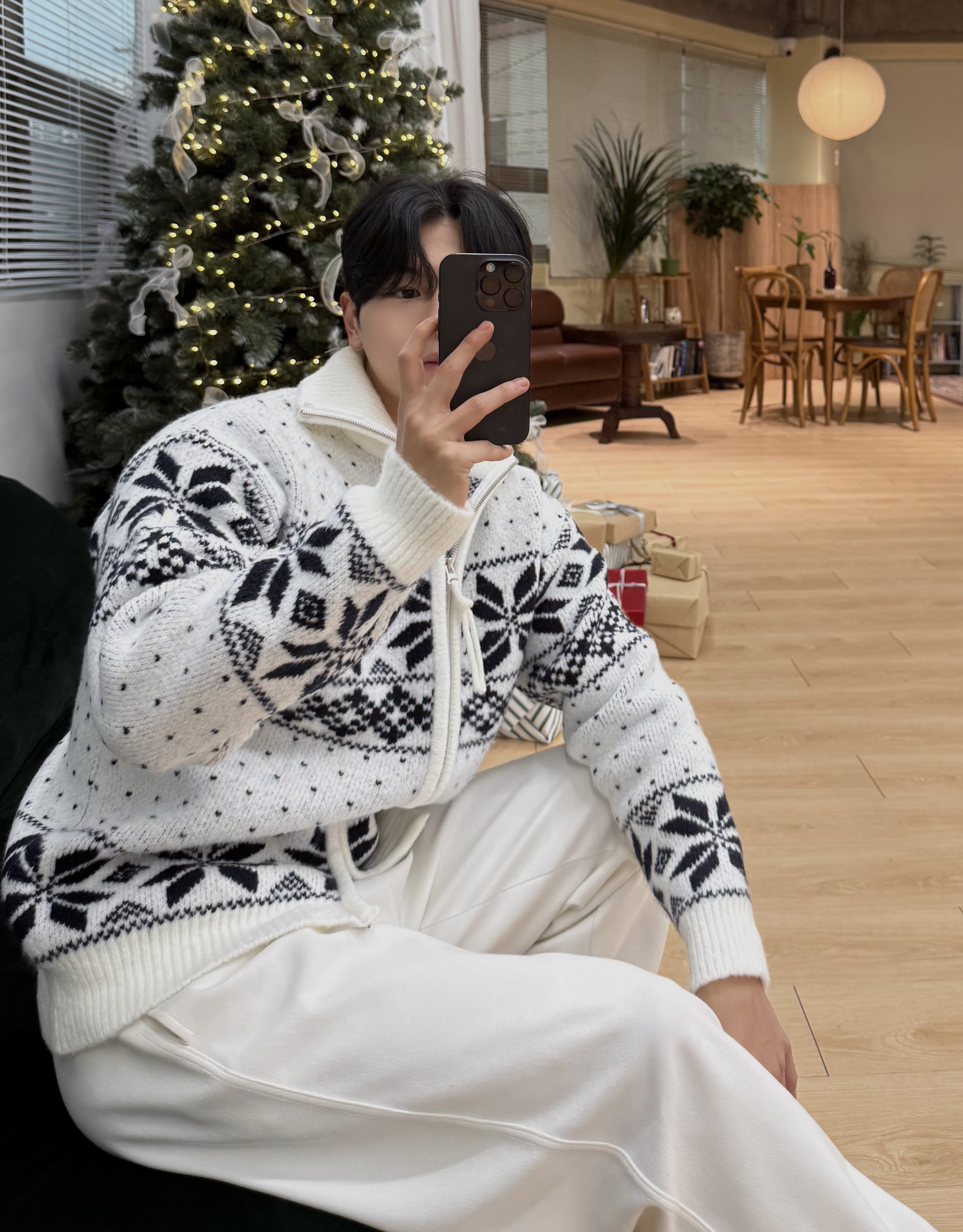 겨울 내내 포근하게 착용 가능한 눈꽃 패턴 니트 집업이에요:)
