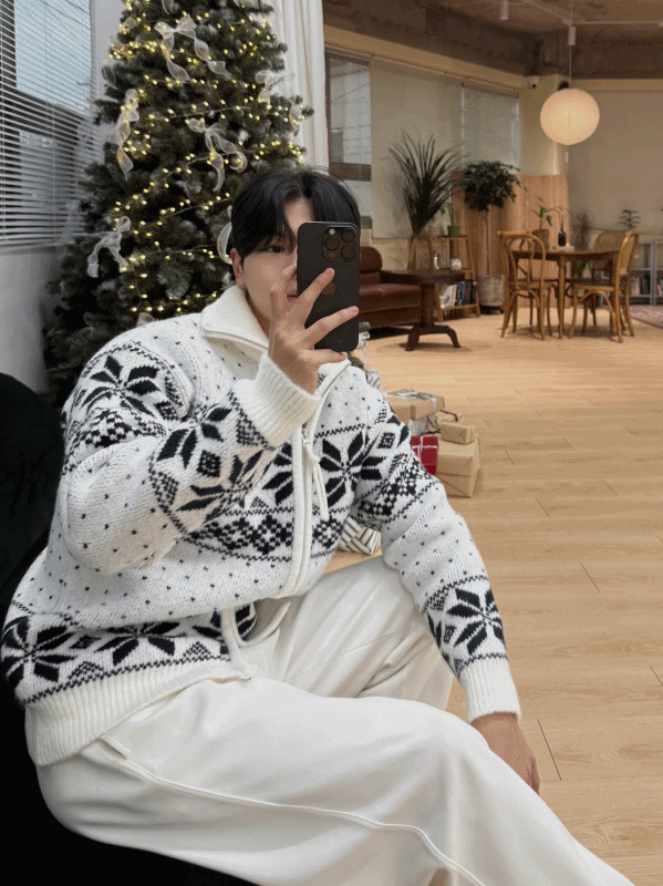 겨울 내내 포근하게 착용 가능한 눈꽃 패턴 니트 집업이에요:)