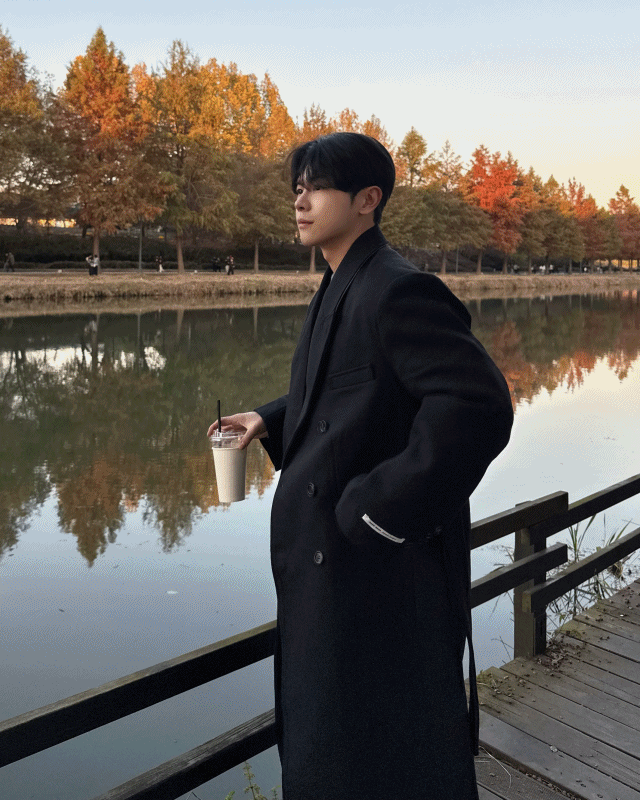 맥시한 기장감, 로브 디테일의 더블코트에요:)