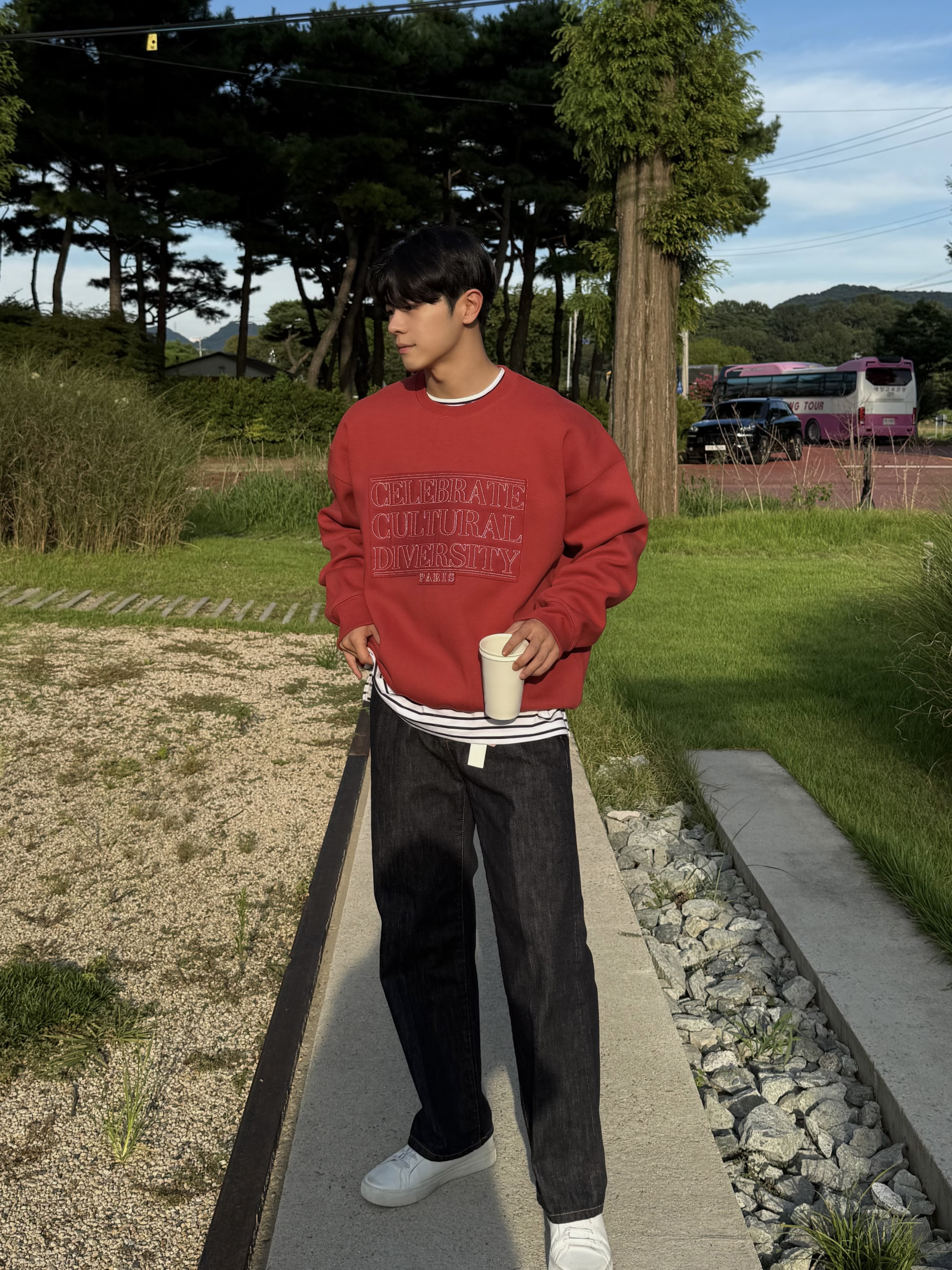 맨투맨 한 장만 착용하여도 밋밋한 느낌이 없습니다