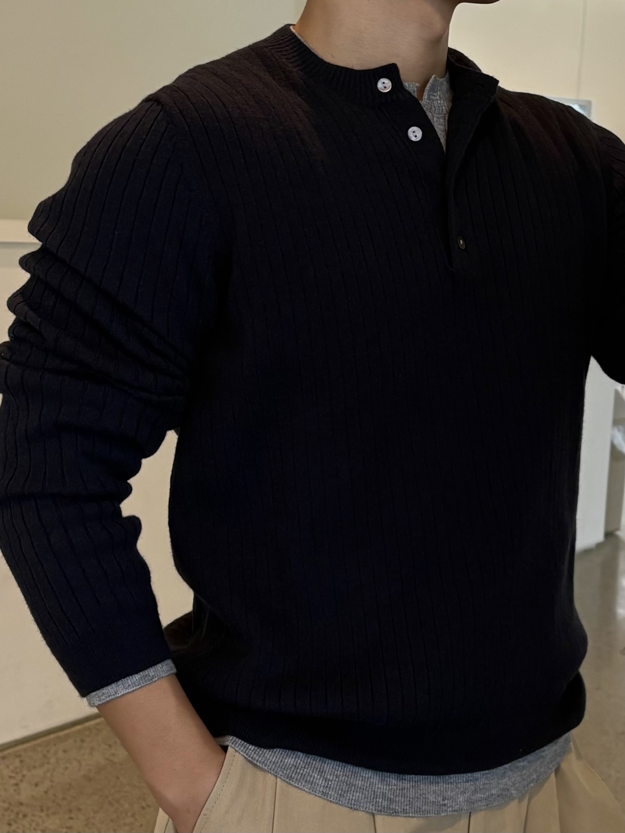 단 한장으로 레이어드 실루엣을 연출할 수 있는 헨리넥 니트입니다!