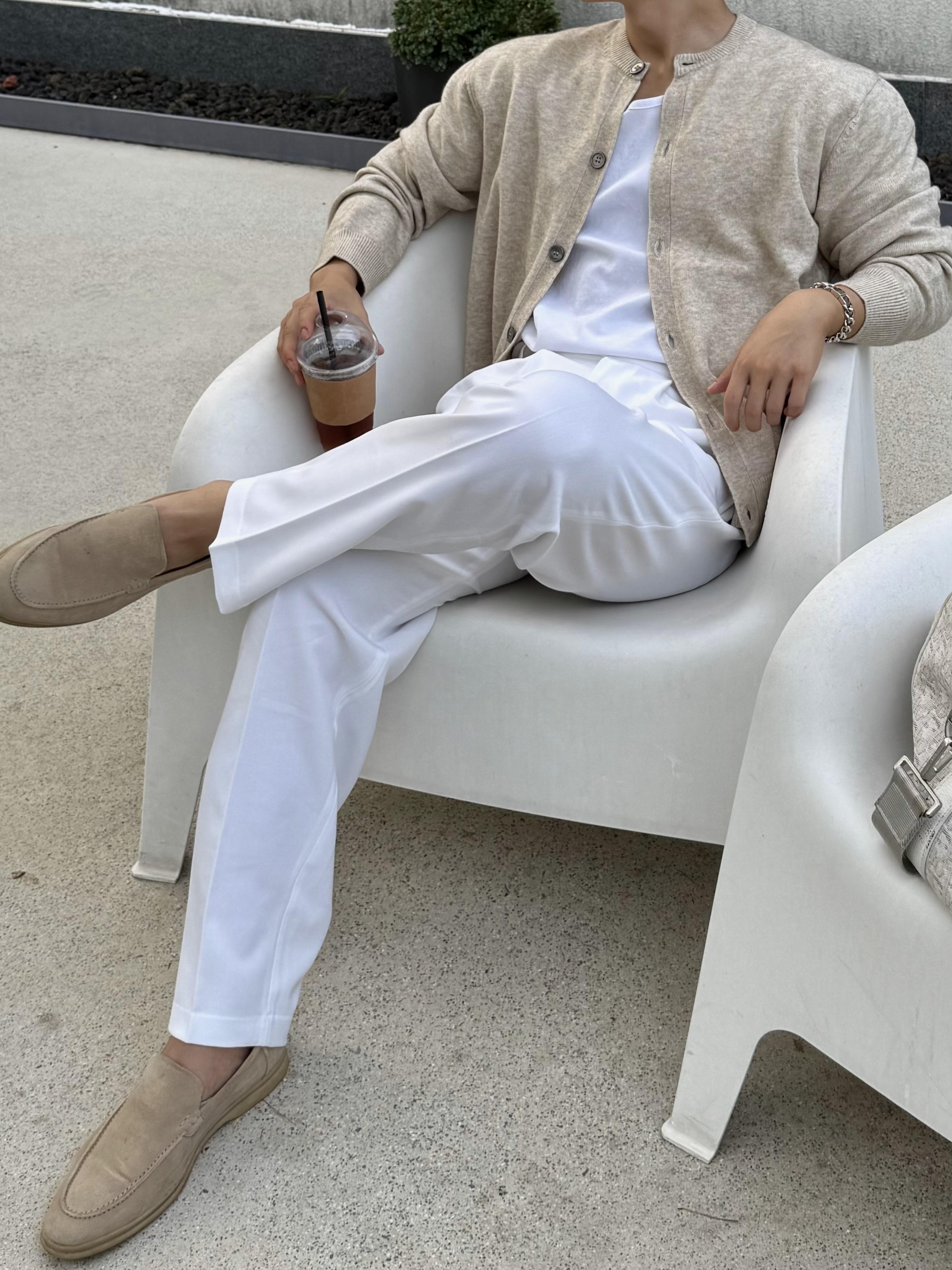 흔하게 볼 수 있는 깊게 파인 V넥의 가디건은 단품으로 입기엔 부담스럽고