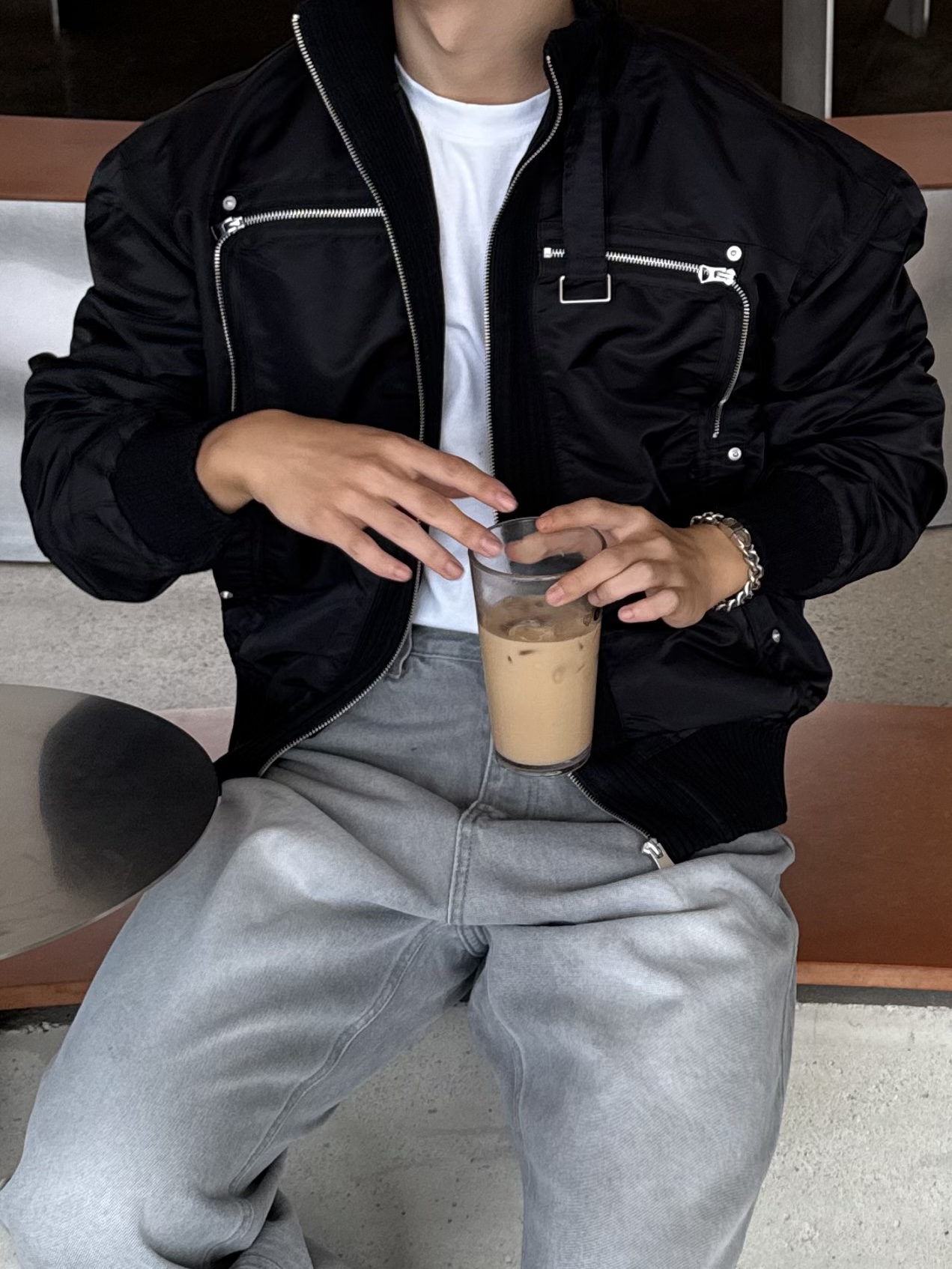 하이넥 카라 디테일과 전면 지퍼 디테일로