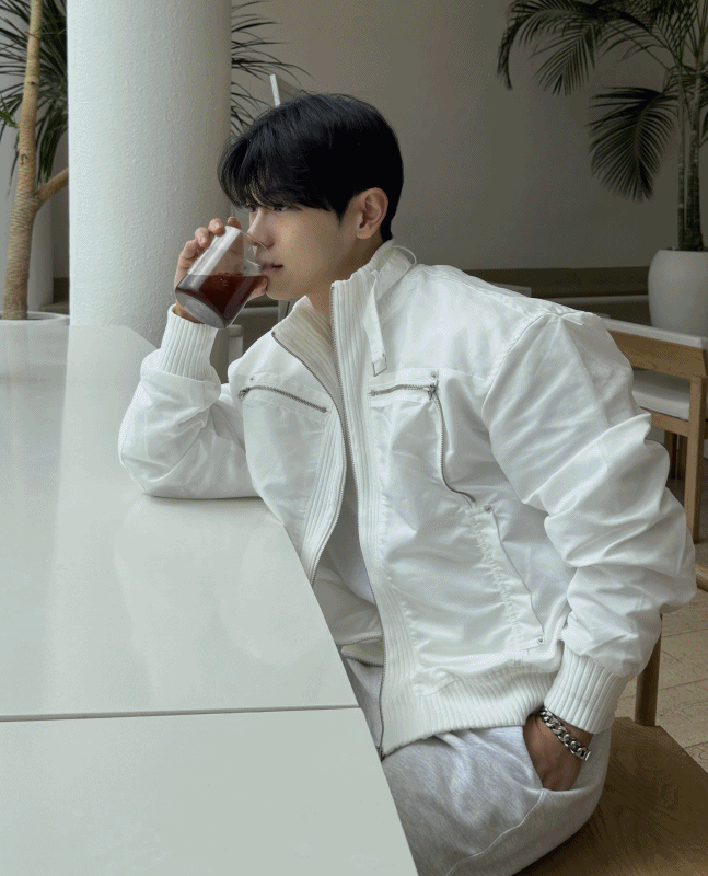 하이넥 카라 디테일과 전면 지퍼 디테일로