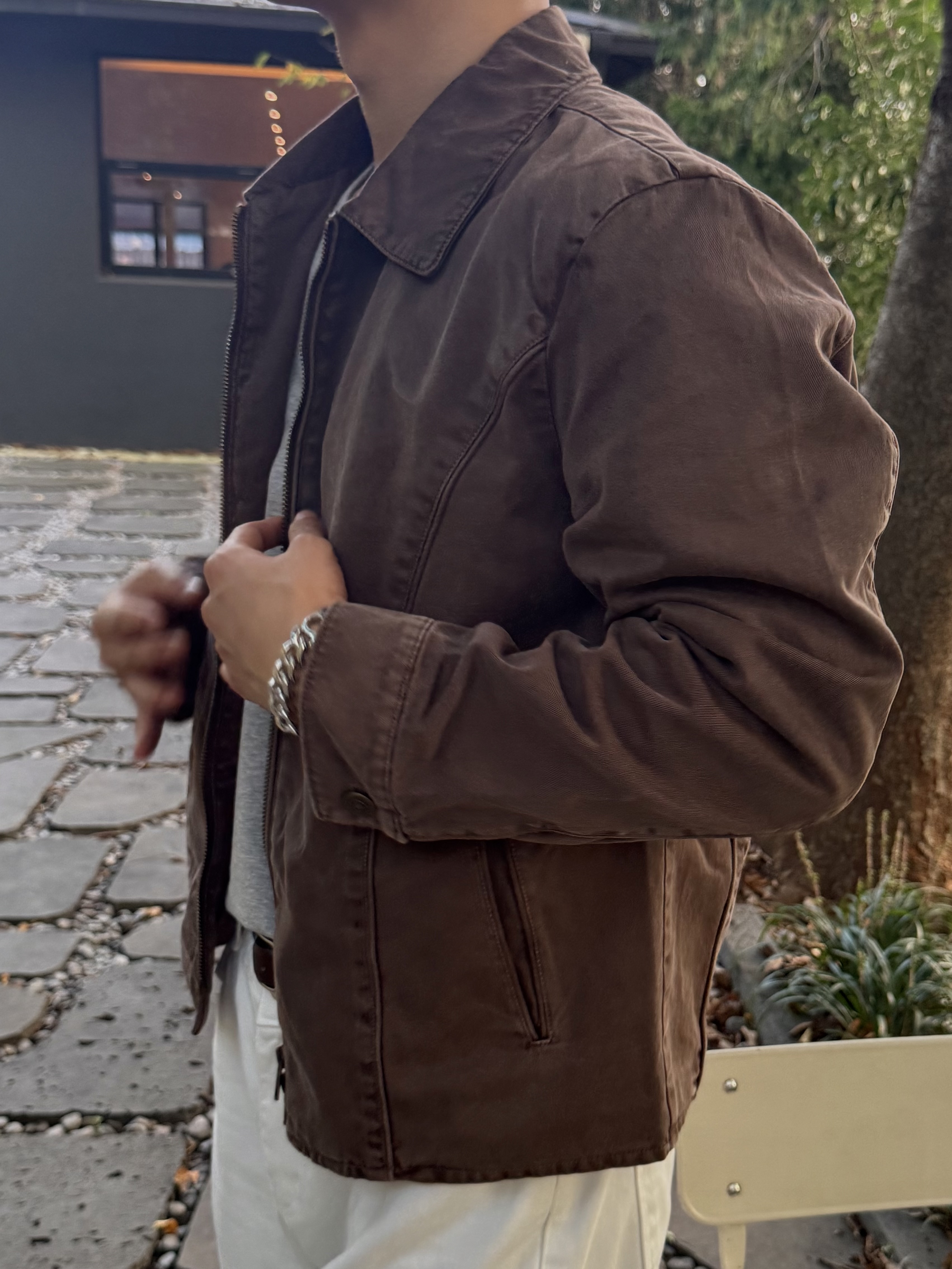 빈티지한 컬러감의 다잉 크롭 자켓입니다!