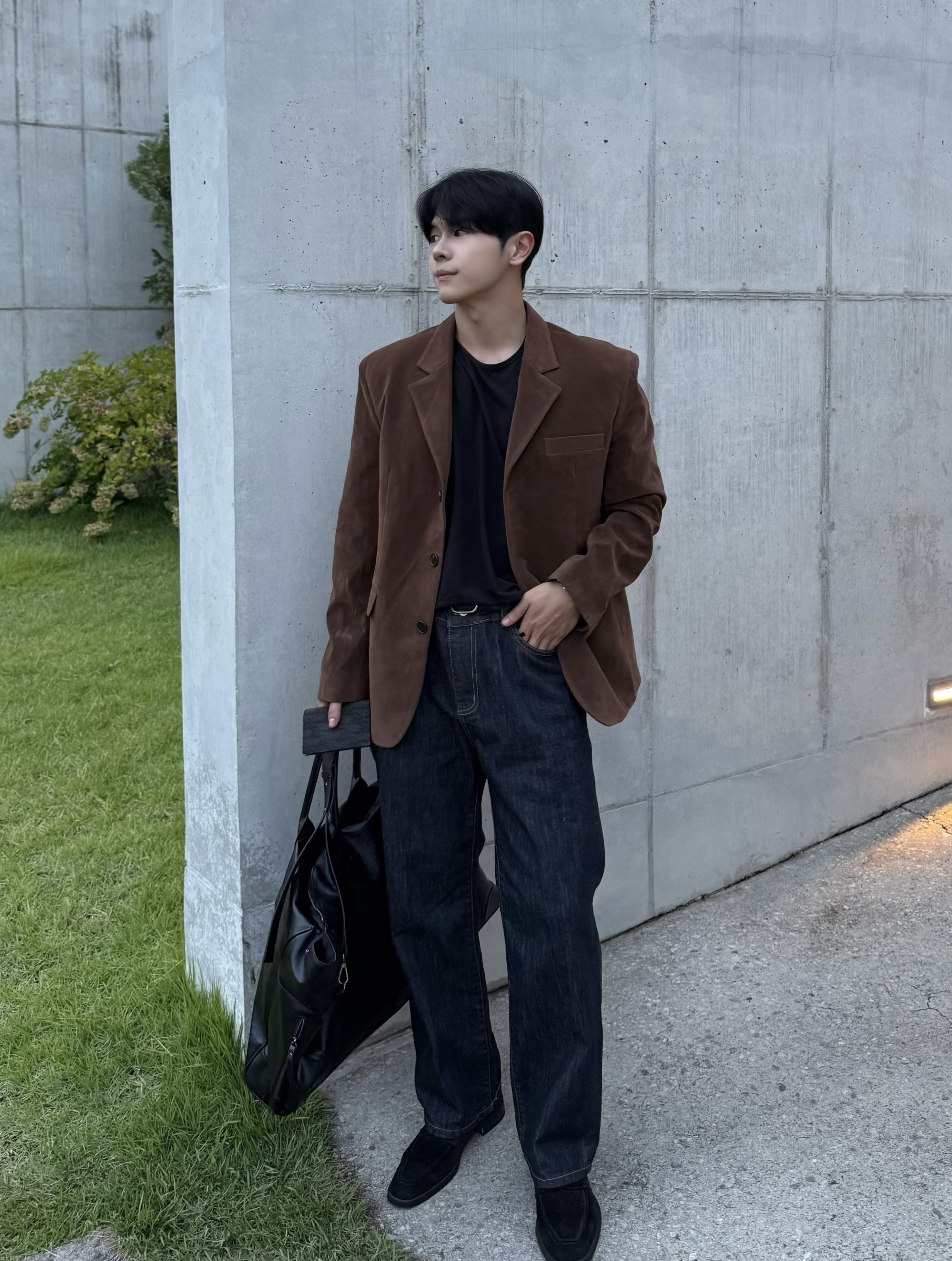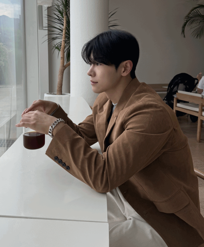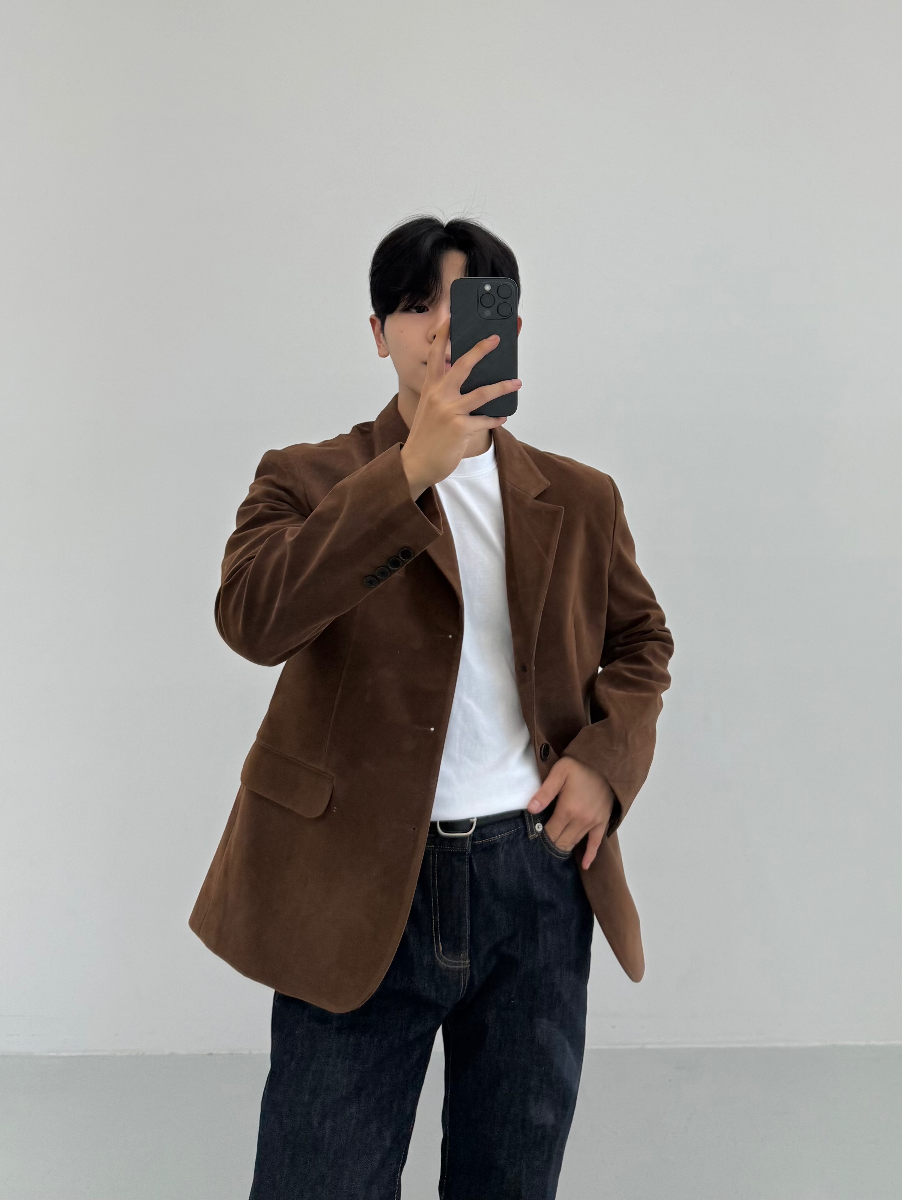 흔한 블레이저들과는 다른 스웨이드 소재의 블레이저로
