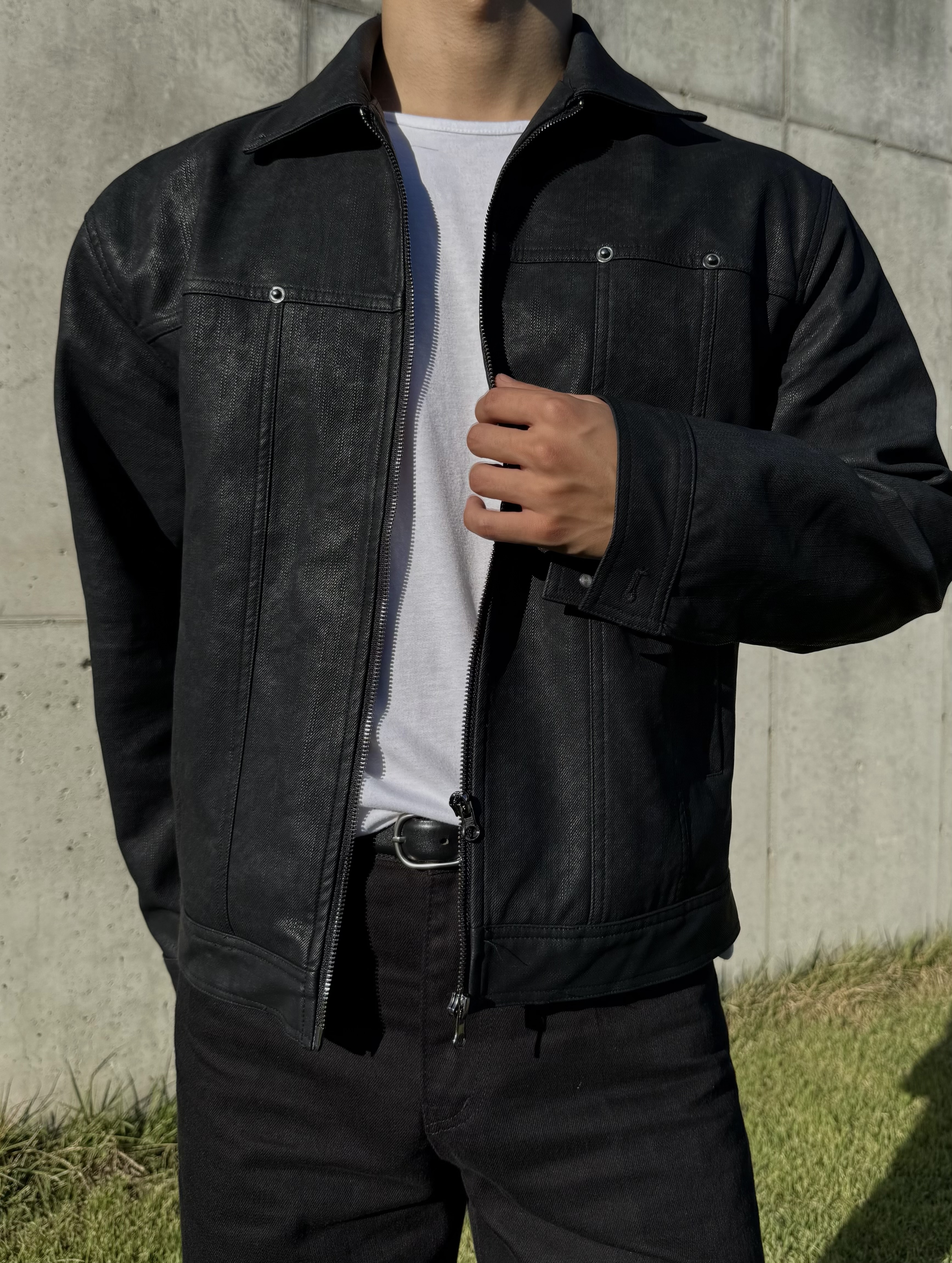 고급스러운 오일 워싱 레더 소재로 제작된 자켓입니다!