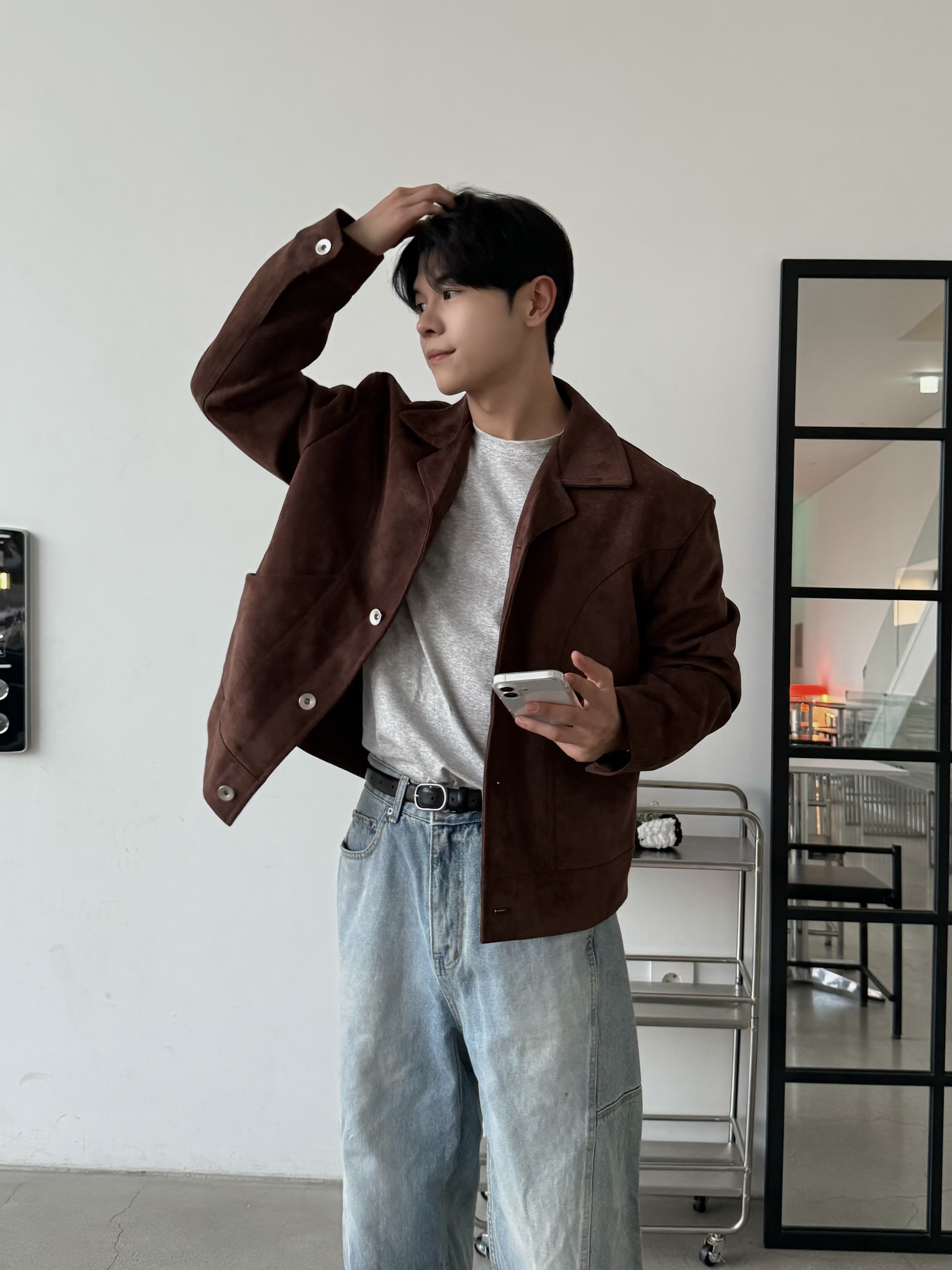 앞판 절개 디테일로 트렌디한 실루엣을 연출하는 스웨이드 자켓입니다!