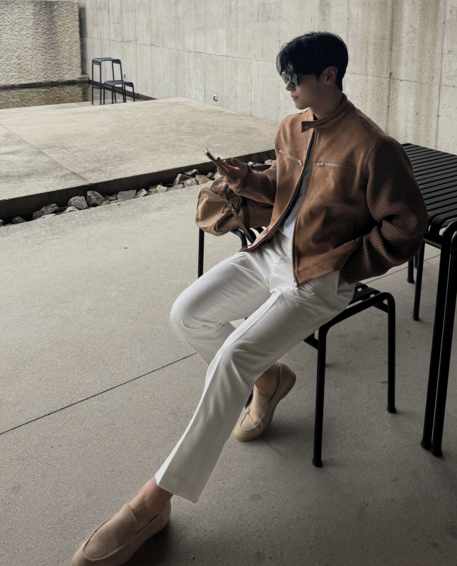 소매는 니트, 몸판은 스웨이드 소재의 유니크한 자켓입니다!