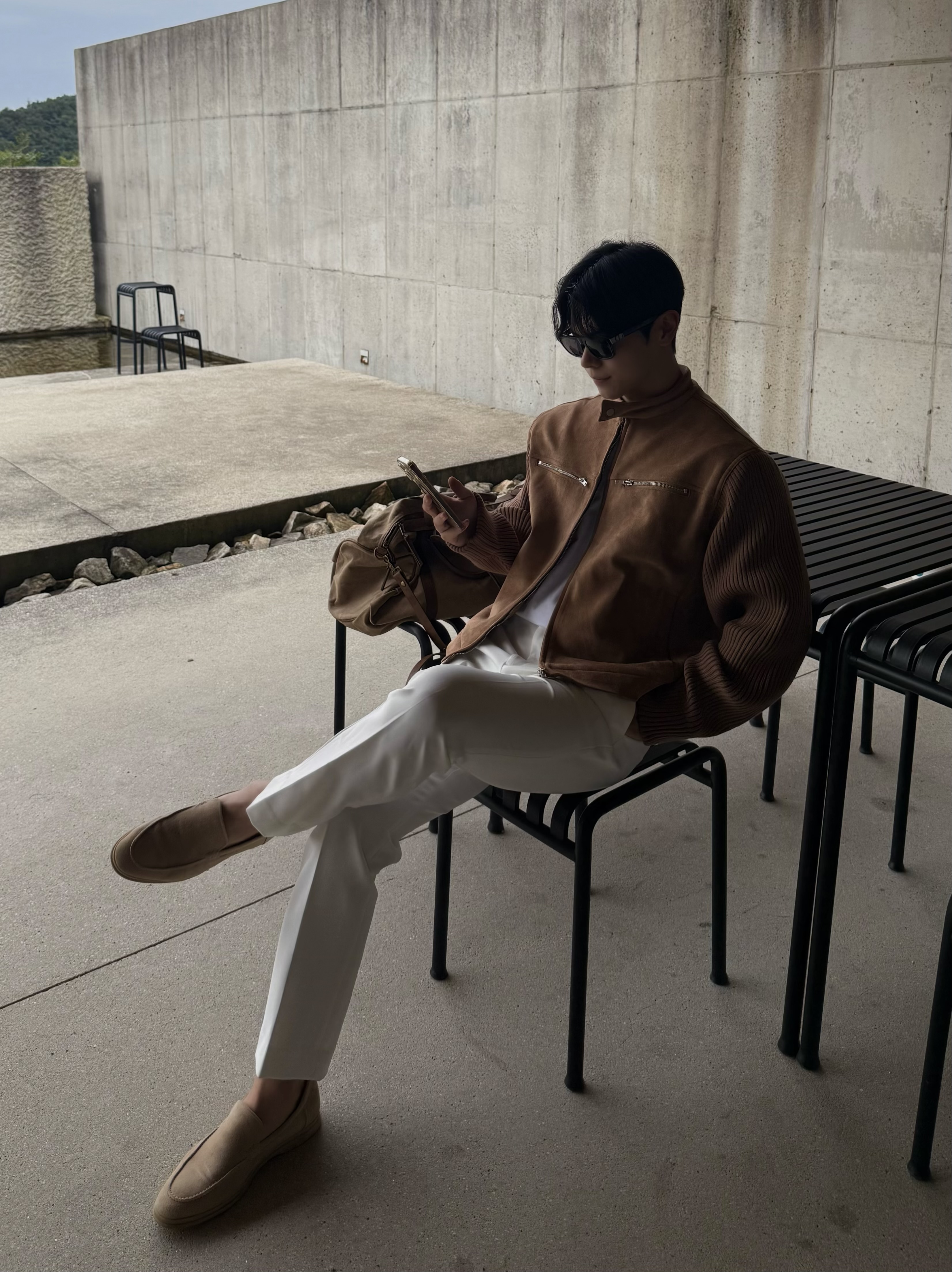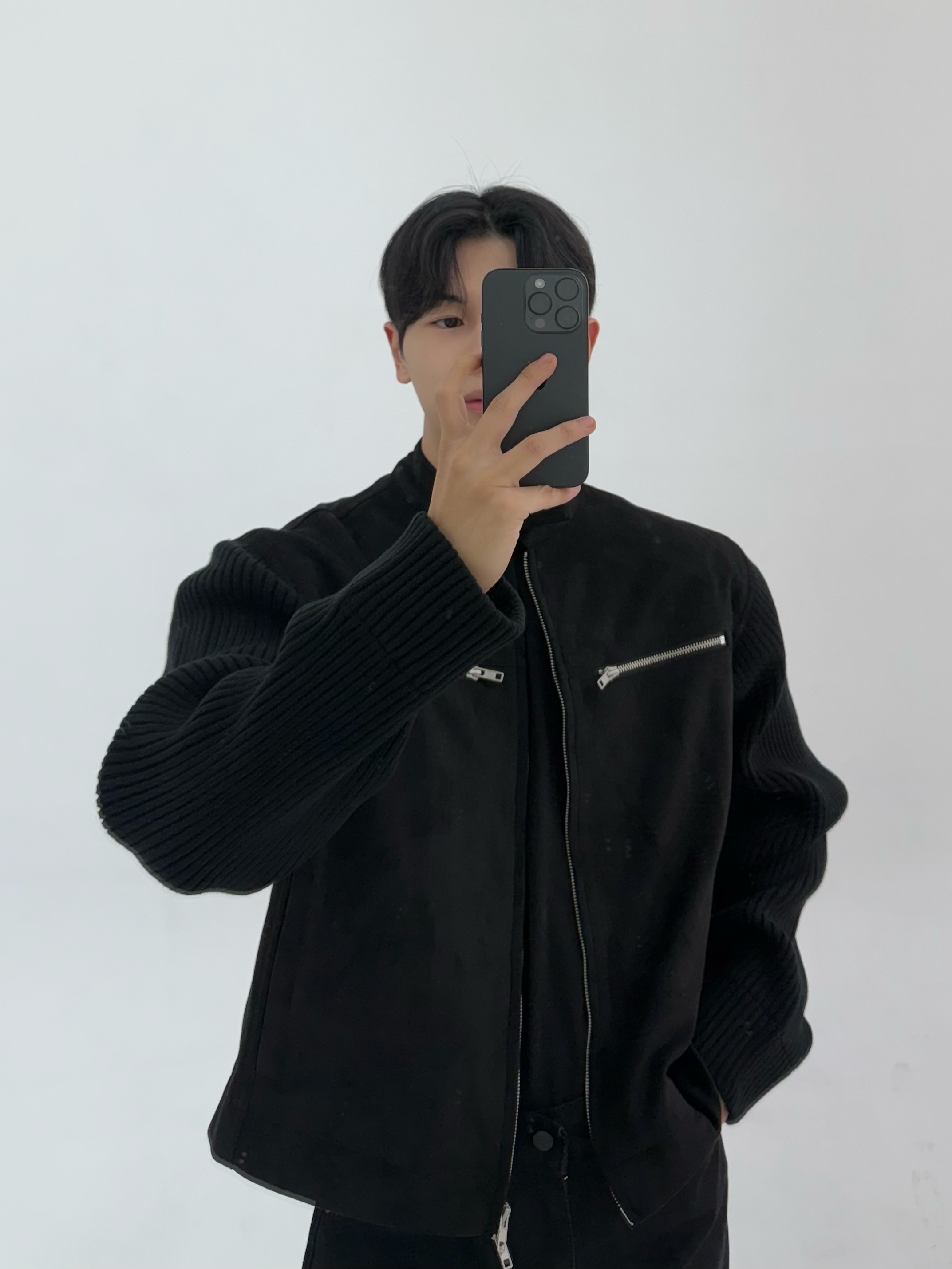 소매는 니트, 몸판은 스웨이드 소재의 유니크한 자켓입니다!