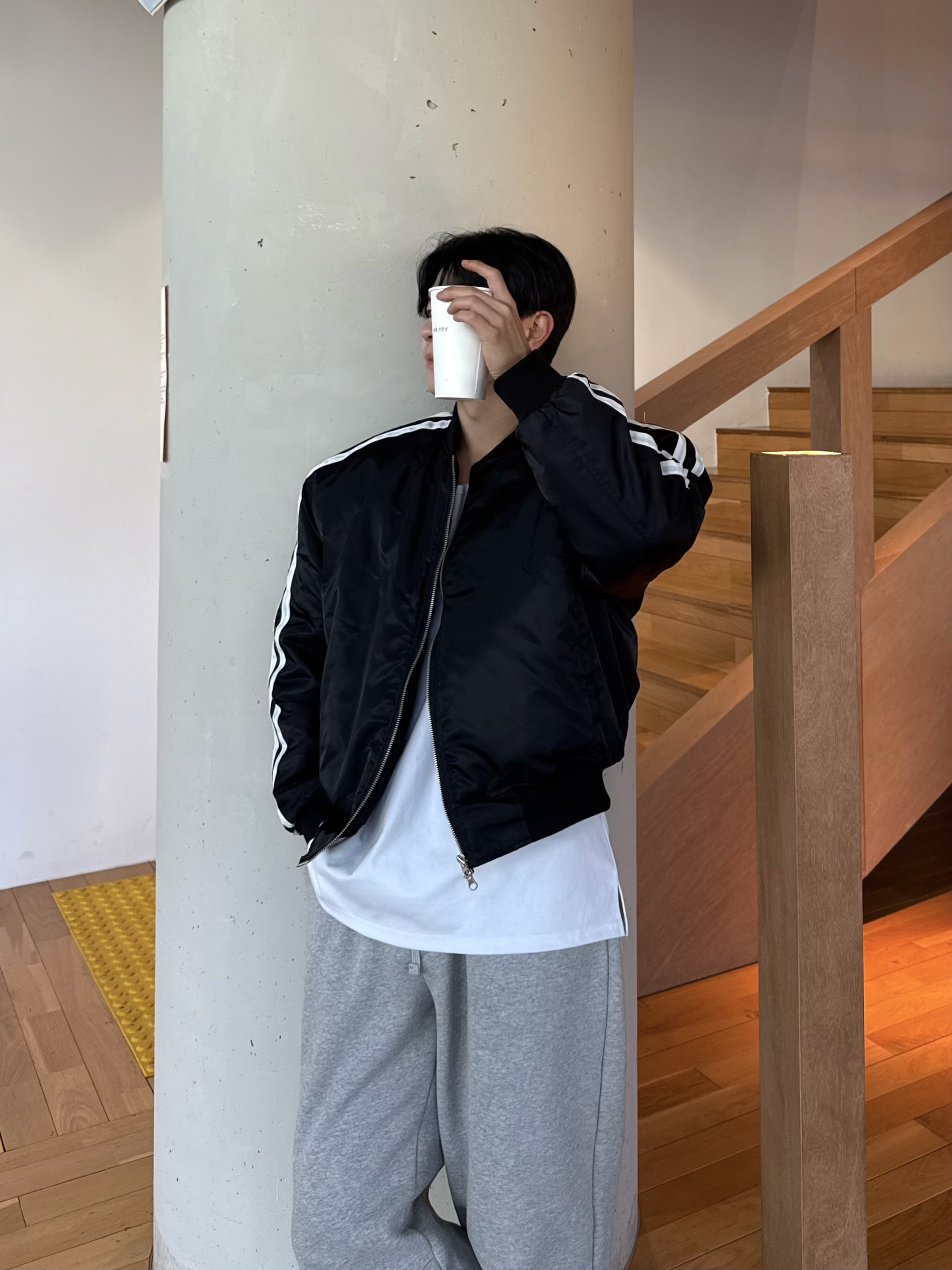 트랙 디자인으로 캐쥬얼한 무드를 연출하는 패딩점퍼입니다!