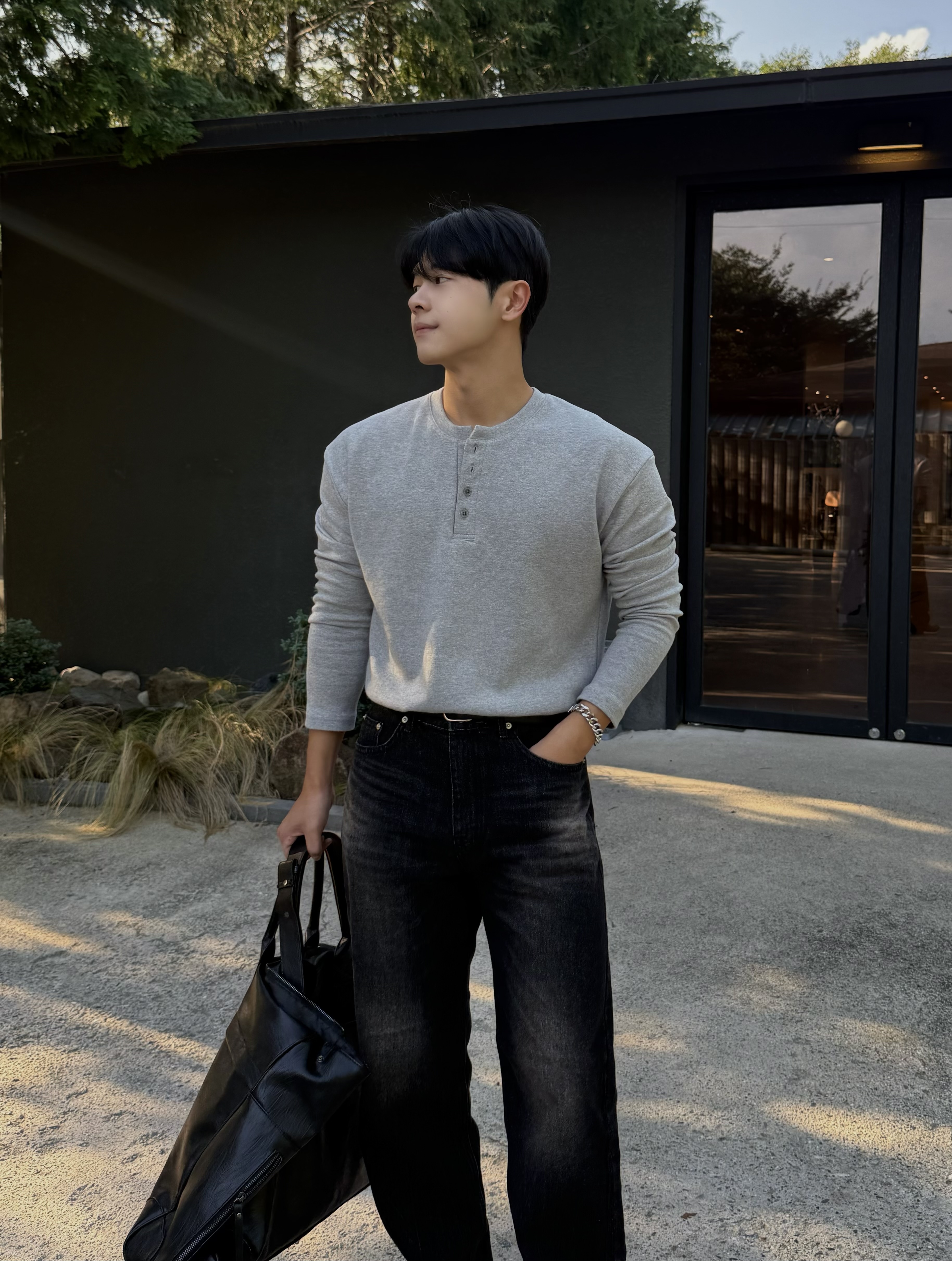 여름 제외 모든 계절에 활용 가능한 헨리넥 긴팔티입니다!