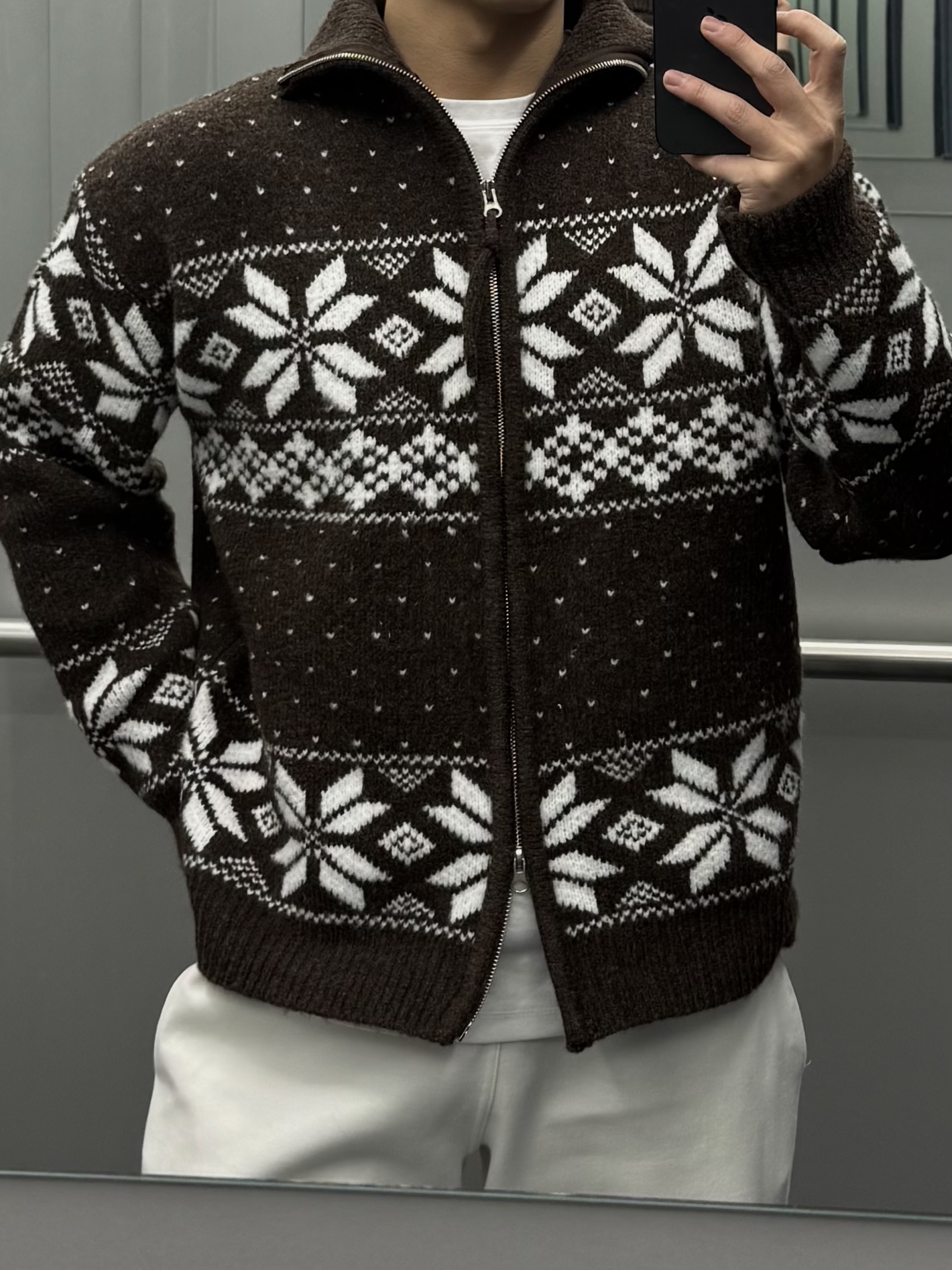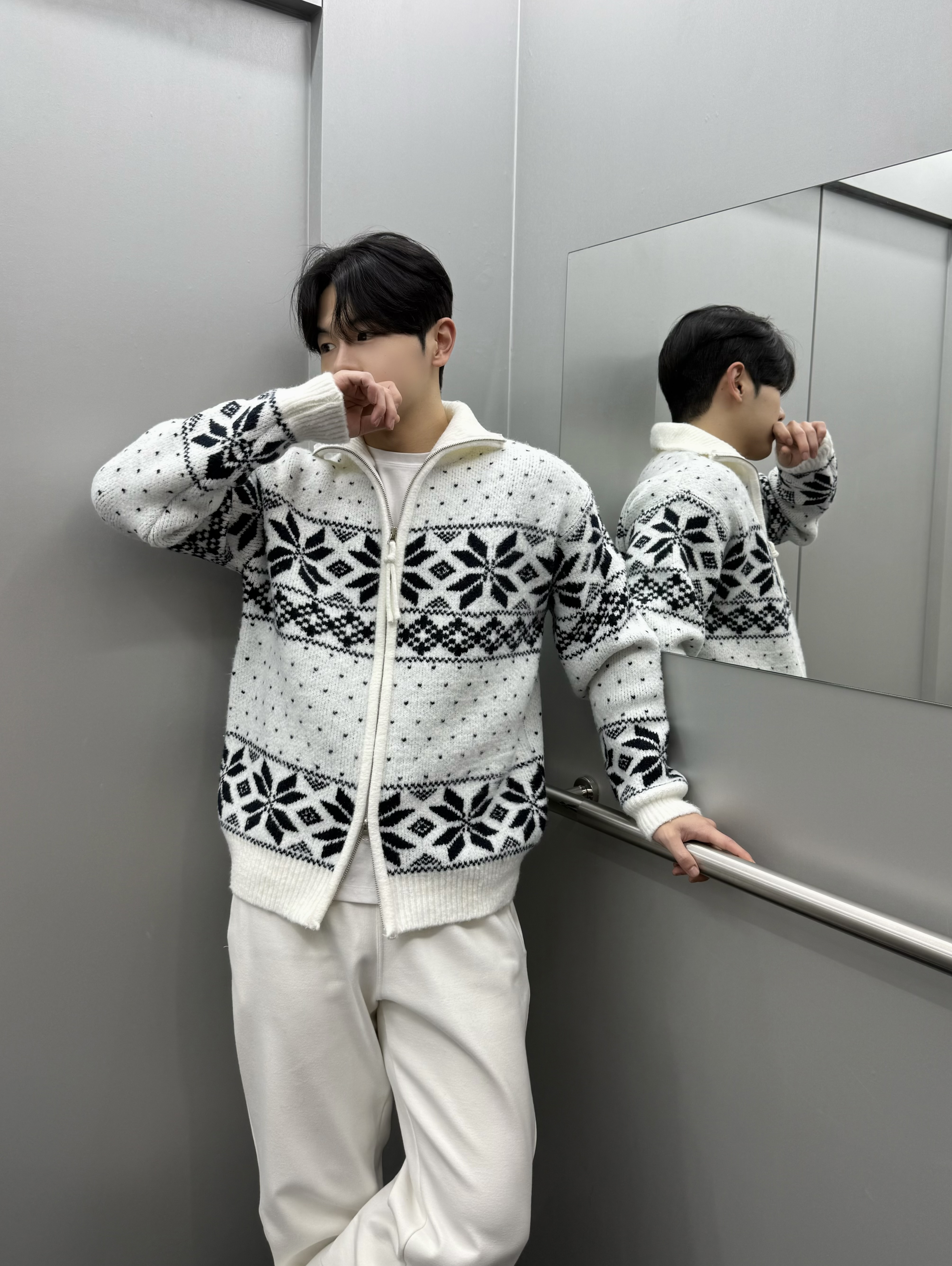 겨울 내내 포근하게 착용 가능한 눈꽃 패턴의 노르딕 니트집업이에요!